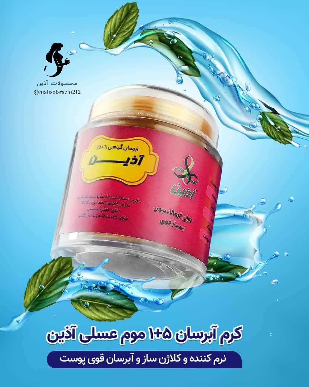 👌🏻✨ تجربهای بینظیر از شادابی و طراوت با کرم آبرسان 5+1 آذین! ساخته شده از موم عسلی طبیعی، این کرم پوست شما را به طور عمیق آبرسانی کرده و نرمی و لطافت بینظیری به آن میبخشد. مناسب برای انواع پوست، به سرعت جذب میشود و حس تازگی و جوانی را به شما هدیه میدهد. 🌿💦